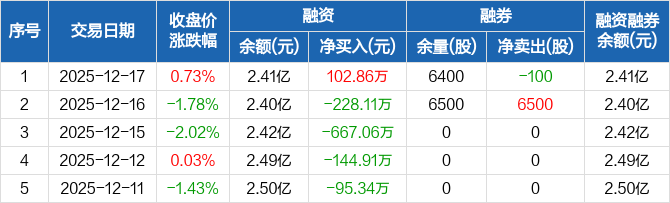 明月镜片:融资净买入102.86万元,融资余额2.41亿元(12-17)