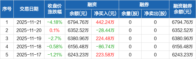 骏成科技:融资净买入442.24万元,融资余额6794.76万元(11-21)