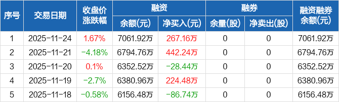 骏成科技:融资净买入267.16万元,融资余额7061.92万元(11-24)