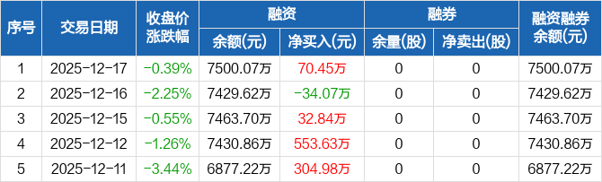 骏成科技:融资净买入70.45万元,融资余额7500.07万元(12-17)