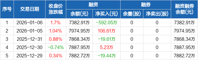 骏成科技:融资净偿还592.05万元,融资余额7382.91万元(01-06)