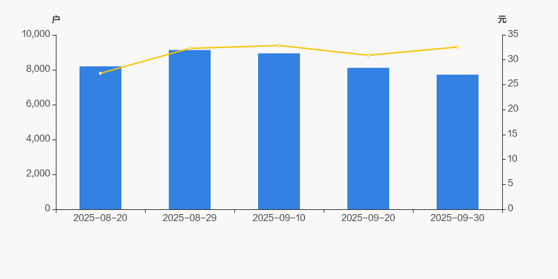 截至2025年9月30日,公司最新总股本为1.13亿股,其中流通股本为6465.57万股。户均持有流通股数量由上期的7972股上升至8377股,户均流通市值27.28万元。