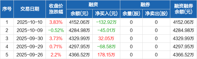 洁雅股份:融资净偿还132.92万元,融资余额4152.06万元(10-10)