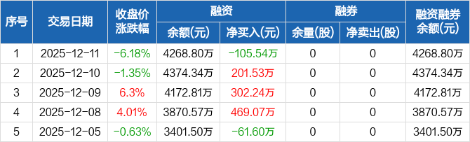 洁雅股份:融资净偿还105.54万元,融资余额4268.8万元(12-11)