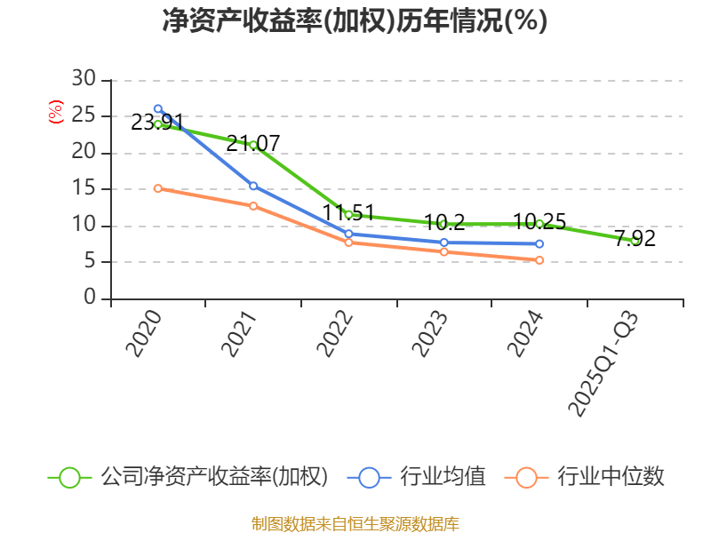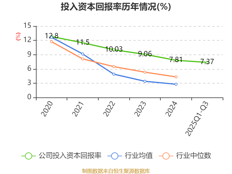 盈利能力方面, 2025年前三季度公司加权平均净资产收益率为7.92%,同比上升0.13个百分点。公司2025年前三季度投入资本回报率为7.37%,较上年同期上升0.61个百分点。