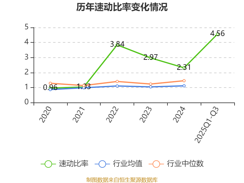 2025年前三季度,公司流动比率为4.6,速动比率为4.56。