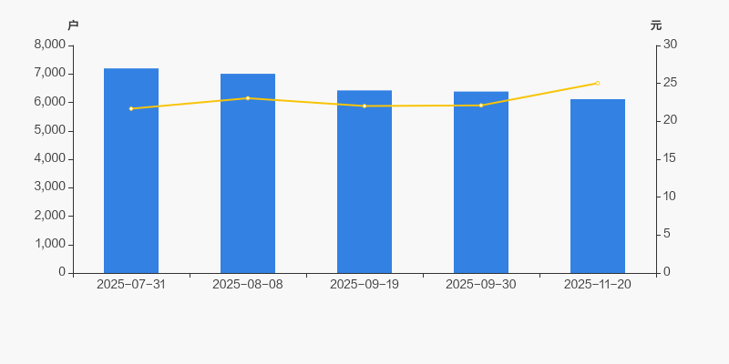 自2025年7月31日以来,公司股东户数连续4期下降,截至目前减幅为15.04%。2025年7月31日至2025年11月20日区间股价上涨15.51%。