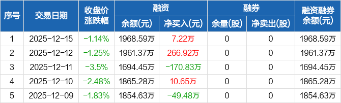 雅艺科技:融资净买入7.22万元,融资余额1968.59万元(12-15)