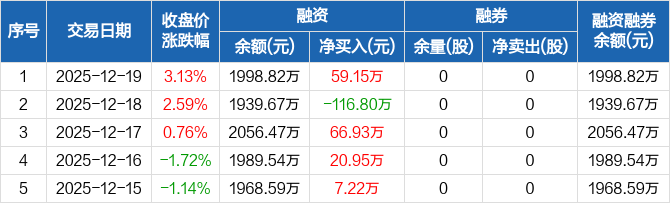 雅艺科技:融资净买入59.15万元,融资余额1998.82万元(12-19)