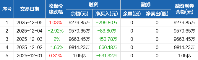 恒光股份:连续6日融资净偿还累计2552.78万元(12-05)