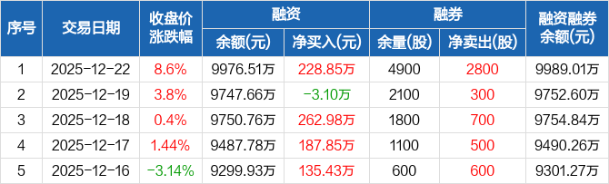 恒光股份:融资净买入228.85万元,融资余额9976.51万元(12-22)