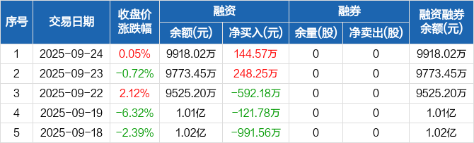 正强股份:融资净买入144.57万元,融资余额9918.02万元(09-24)