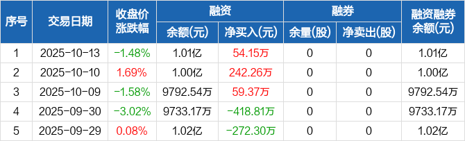 正强股份:连续3日融资净买入累计355.77万元(10-13)