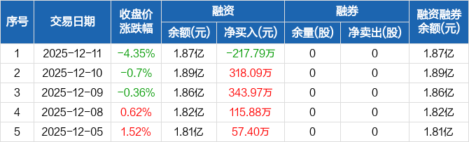 正强股份:融资净偿还217.79万元,融资余额1.87亿元(12-11)