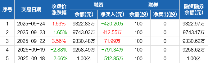 新特电气:融资净偿还420.2万元,融资余额9322.83万元(09-24)