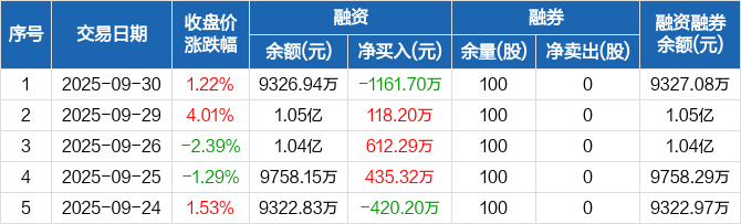 新特电气:融资净偿还1161.7万元,融资余额9326.94万元(09-30)
