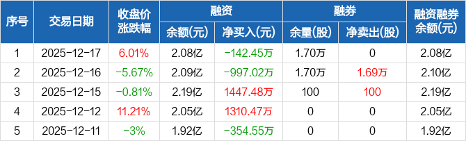 新特电气:融资净偿还142.45万元,融资余额2.08亿元(12-17)