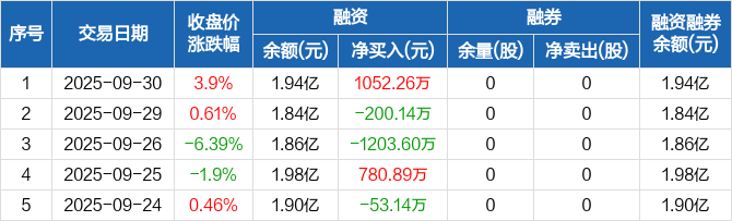 奕东电子:融资净买入1052.26万元,融资余额1.94亿元(09-30)