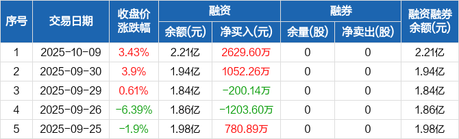奕东电子:融资净买入2629.6万元,融资余额2.21亿元(10-09)