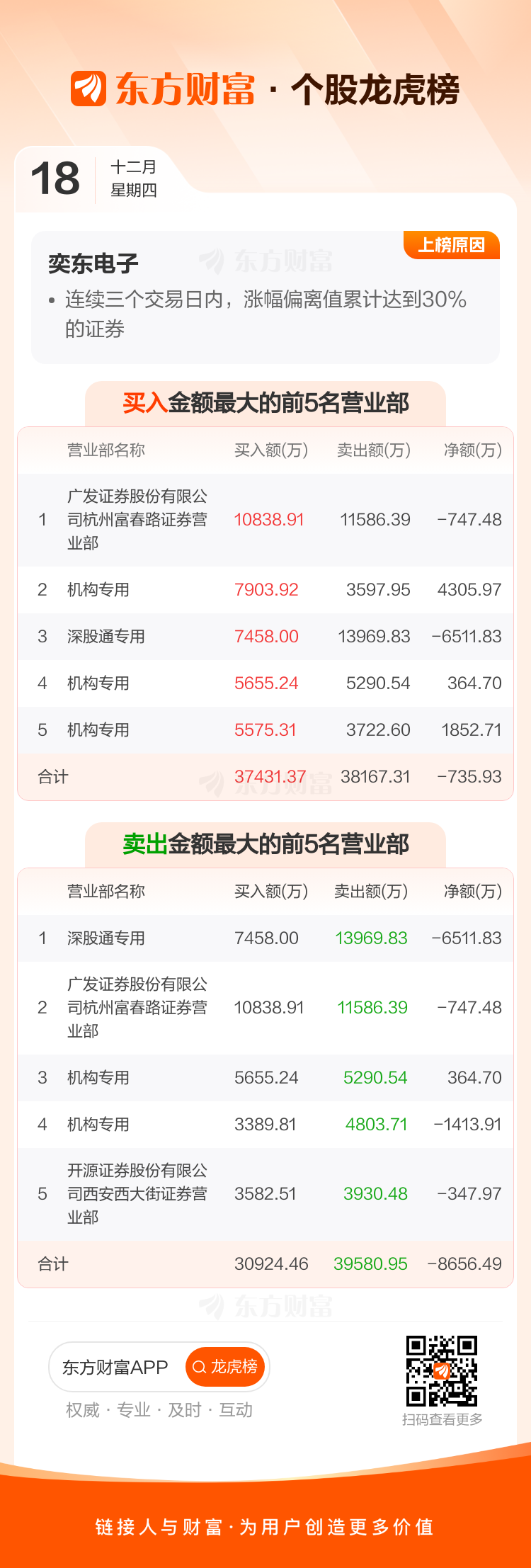 奕东电子(301123)龙虎榜数据(12-18)