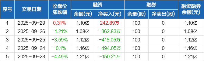 腾亚精工:融资净买入242.89万元,融资余额1.1亿元(09-29)