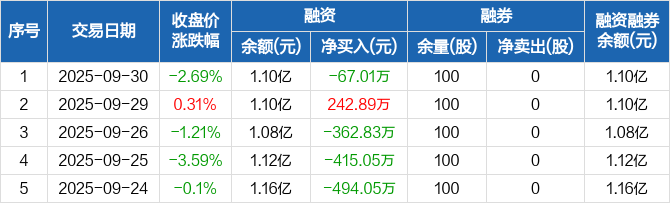 腾亚精工:融资净偿还67.01万元,融资余额1.1亿元(09-30)
