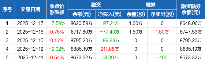腾亚精工:连续3日融资净偿还累计264.61万元(12-17)