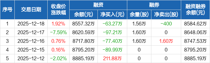 腾亚精工:连续4日融资净偿还累计327.88万元(12-18)