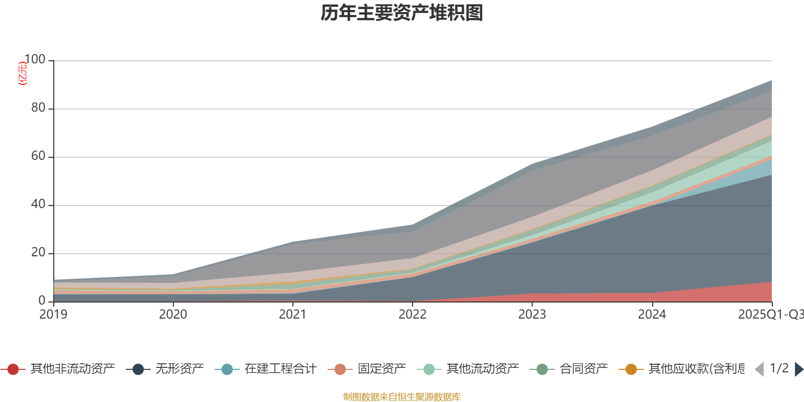 资产重大变化方面,截至2025年三季度末,公司货币资金较上年末减少25.23%,占公司总资产比重下降8.1个百分点;在建工程合计较上年末增加4452.42%,占公司总资产比重上升6.77个百分点;其他非流动资产较上年末增加130.42%,占公司总资产比重上升4.01个百分点;无形资产较上年末增加22.49%,占公司总资产比重下降1.6个百分点。