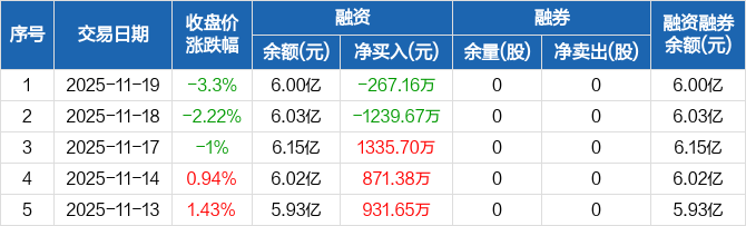 武汉天源:融资净偿还267.16万元,融资余额6亿元(11-19)