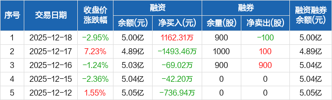 强瑞技术:融资净买入1162.31万元,融资余额5亿元(12-18)