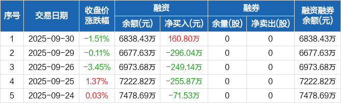 瑞纳智能:融资净买入160.8万元,融资余额6838.43万元(09-30)
