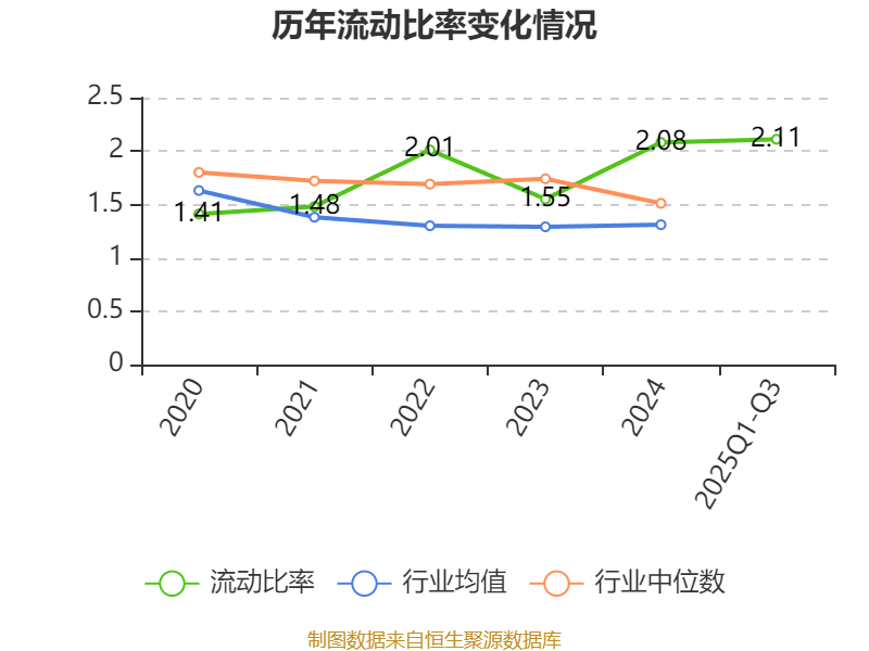 2025年前三季度,公司流动比率为2.11,速动比率为1.65。