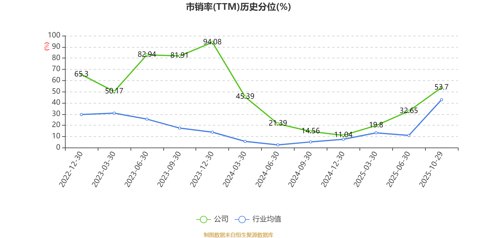 以10月29日收盘价计算,聚赛龙目前市盈率(TTM)约为46.52倍,市净率(LF)约2.63倍,市销率(TTM)约1.38倍。