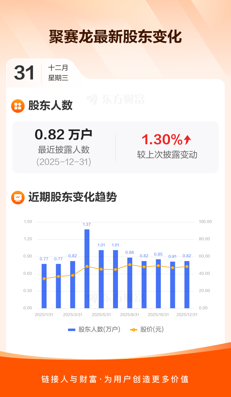 聚赛龙:截至12月31日最新股东户数8243户,较上期增加1.30%