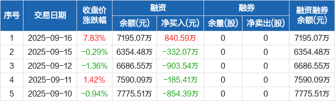 金钟股份:融资净买入840.59万元,融资余额7195.07万元(09-16)