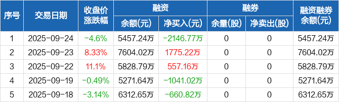 金钟股份:融资净偿还2146.77万元,创历史新高(09-24)