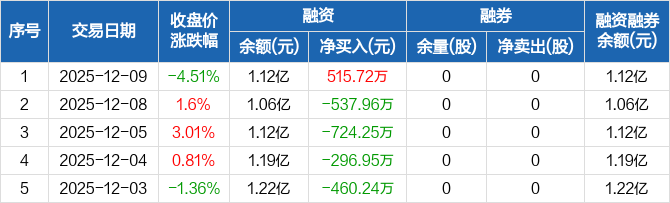 金钟股份:融资净买入515.72万元,融资余额1.12亿元(12-09)