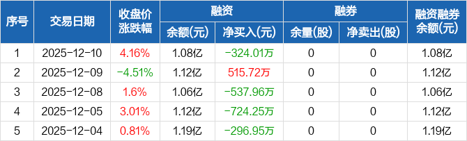 金钟股份:融资净偿还324.01万元,融资余额1.08亿元(12-10)