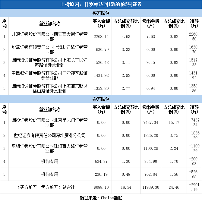 多主力现身龙虎榜,嘉戎技术涨停(12-02)