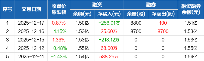隆华新材:融资净偿还256.01万元,融资余额1.5亿元(12-17)