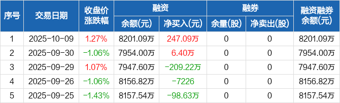 冠龙节能:融资净买入247.09万元,融资余额8201.09万元(10-09)