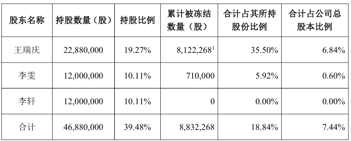记者注意到,今年9月,因合同纠纷,公司控股股东、实际控制人之一王瑞庆的部分股份被司法冻结。
