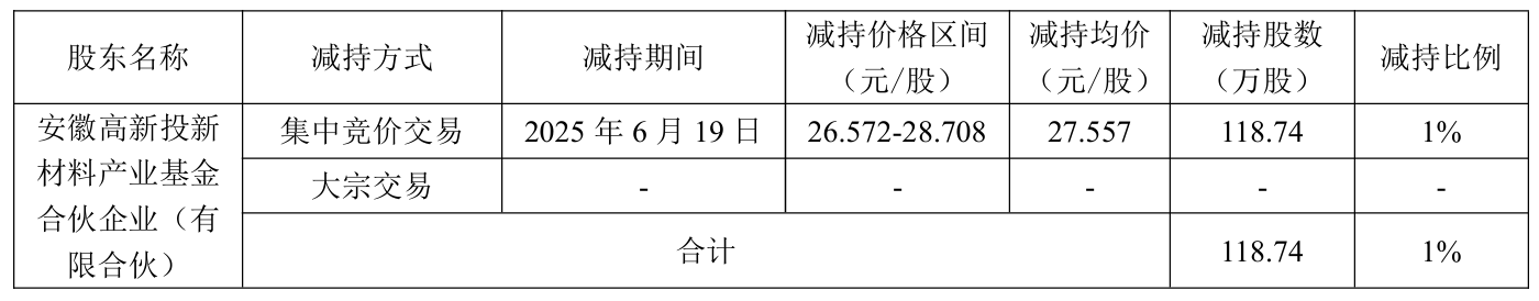 截至本公告日,新材料基金持有公司股份650.49万股,占公司总股本的5.48%。值得一提的是,该股东刚于今年6月减持了118.74万股,占公司总股本的1%,套现约3272万元。