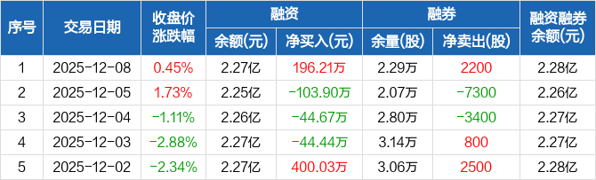 中科江南:融资净买入196.21万元,融资余额2.27亿元(12-08)