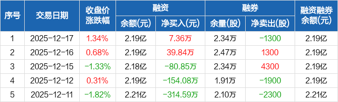中科江南:融资净买入7.36万元,融资余额2.19亿元(12-17)