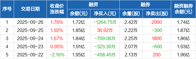 海力风电:融资余额1.72亿元,创历史新低(09-26)