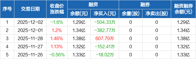 德石股份:融资净偿还504.33万元,融资余额1.29亿元(12-02)