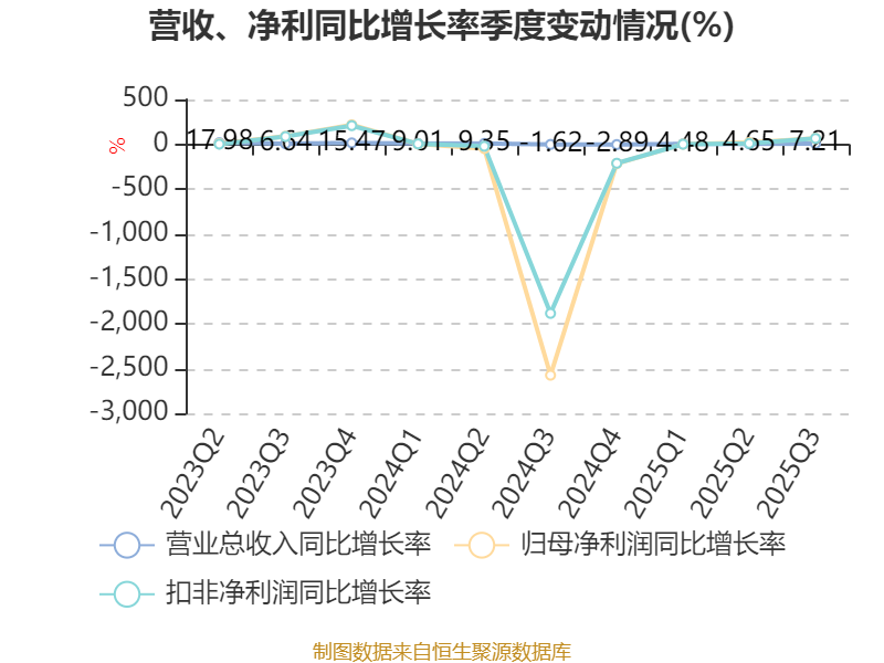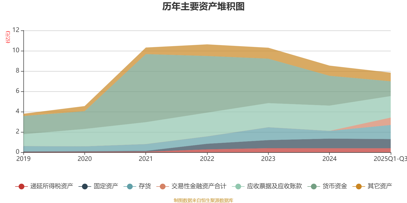 资产重大变化方面,截至2025年三季度末,公司货币资金较上年末减少50.43%,占公司总资产比重下降15.85个百分点;交易性金融资产合计占公司总资产的9.31%,上年末为0;存货较上年末增加82.3%,占公司总资产比重上升8.78个百分点;应收票据及应收账款较上年末减少14.98%,占公司总资产比重下降2.18个百分点。