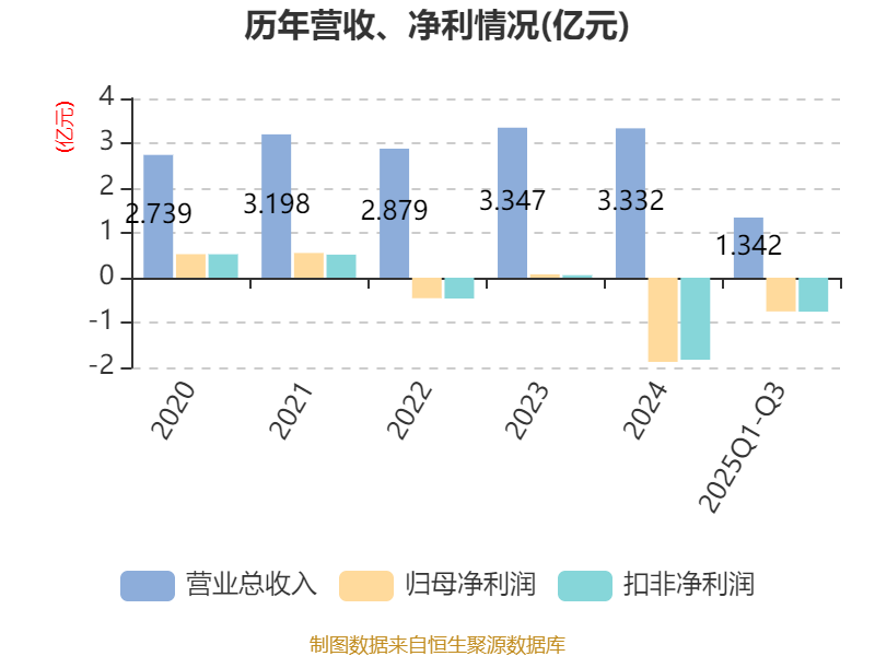 中证智能财讯三维天地(301159)10月30日披露2025年第三季度报告。前三季度公司实现营业总收入1.34亿元,同比增长5.85%;归母净利润亏损7521.66万元,上年同期亏损1.11亿元;扣非净利润亏损7578.31万元,上年同期亏损1.07亿元;经营活动产生的现金流量净额为-4828.72万元,上年同期为-1.48亿元;报告期内,三维天地基本每股收益为-0.97元,加权平均净资产收益率为-12.09%。